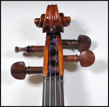 An early 20th Century Continental violin, the two piece back of faint medium curl with similar wood to the sides, the head of plainish wood with rosemary tuning pegs.