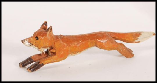 An unusual early 20th century wooden hand painted childs hunting toy set. To include horse and rider, hounds and a fox ( Hunting Interest )