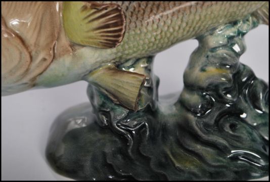 A 20th Century large mouthed Black Bass by Beswick Model number 1266. Impressed and printed marks to base. Measures 13 cm high x 21 cm wide x 8 cm deep.