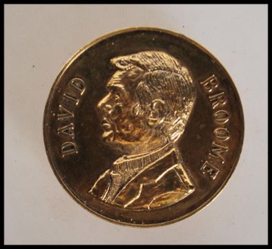 A gilded silver hallmarked medal coin cast in relief with notation for David Broome World Show Jumping Champion 1970 - 1974. Birmingham hallmarked to the sides. 3.5cms diam / weight 32.64g