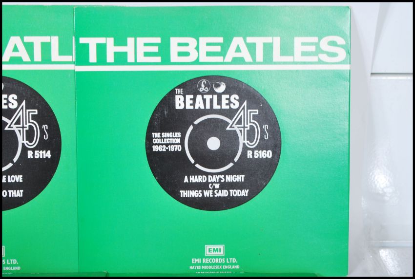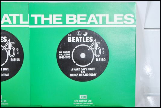 The Beatles Collection - Singles 7 inch 45 RPM 1962-1970 in a cardboard leatherette case with gilt lettering, complete with all 24 singles in sleeves.