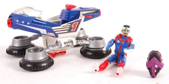 An original vintage 1980's Kenner made MASK action figure playset 'Bandit' Mask Racing Bike / Hovercraft With Action Figure. Appears complete with Ali Bombay with mask / helmet in the original box.