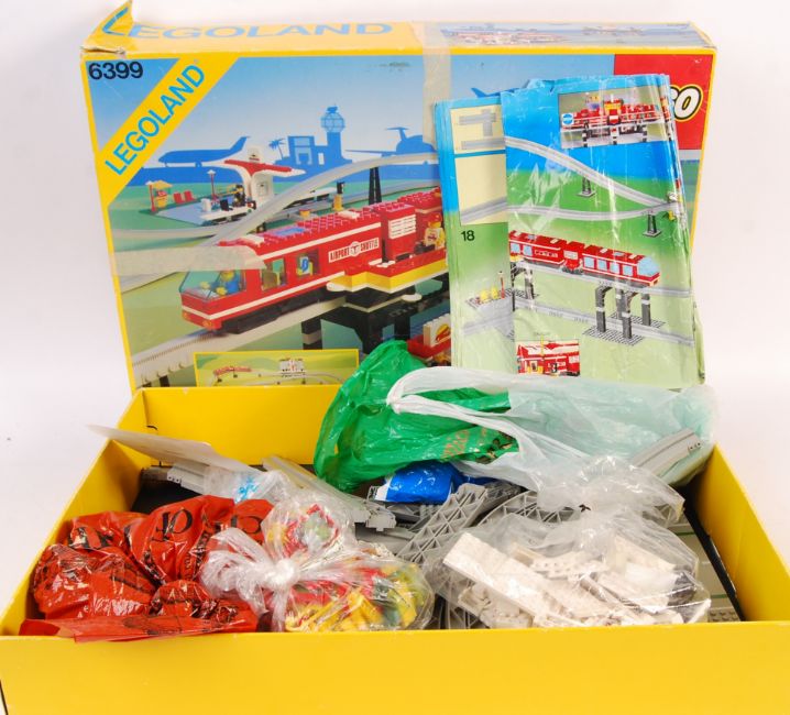 A original vintage Lego Legoland Series set no. 6399 Airport Shuttle Monorail train set. Vendor assures us the set is complete however it is sold as unchecked. With instructions within original box. Contents bagged by vendor.
