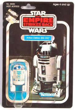 An original vintage Kenner made Star Wars MOC carded action figure ' Artoo-Detoo ( R2-D2 )'. Original 41 back Empire Strikes Back card. Figure mint and untouched, still fully factory sealed. Bubble with some dents. Partially removed sticker wear to top left, otherwise card excellent. Good example of a 41 back R2D2 figure.