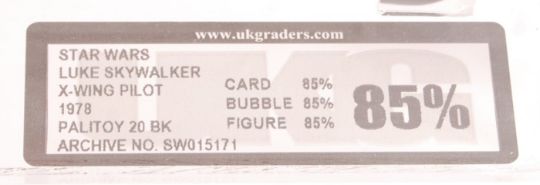 An incredibly rare vintage ex-shop stock condition Palitoy made Star Wars carded MOC action figure ' Luke Skywalker - X Wing Pilot '. UKG Graded (85 - C85, B85, F85). Rare 20 back card ( 20A ). Incredible condition, the card back being unpunched - the bubble with no splits or dents. As fresh as the day it was made. A truly stunning example, and the best we've seen of this figure.
