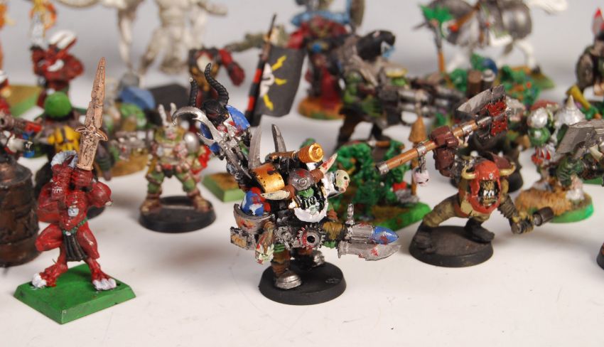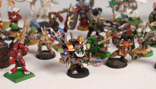 Warhammer - a collection of mostly vintage Games Workshop made Warhammer tabletop war gaming figures - all metal. To include; Orks, Rocket Troopers, Heavy Shooters, Stompas, Weird Boys, Tech Marines, Chaos Demons, Ultra Marine Chaplin in Terminator Armour, and others. All painted, largely to a good standard.