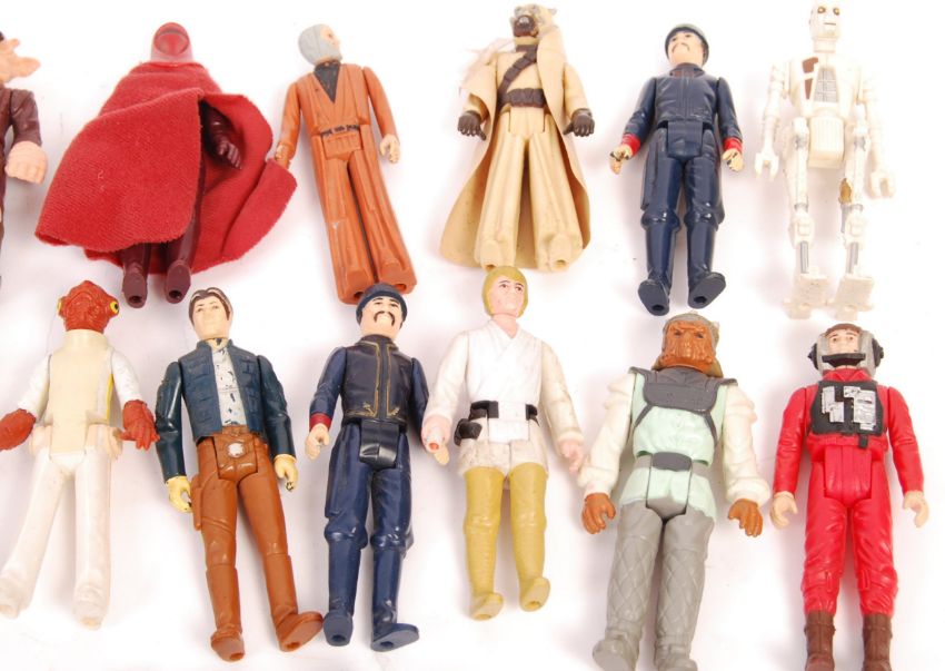 A collection of 50x assorted vintage Kenner / Palitoy made Star Was action figures to include; Boba Fett, Princess Leia, Chewbaca, Cloud Car Pilot, Snow Trooper, Nein Numb, Darth Vader, Tusken Raider, Hans solo in Carbonate (Slave One) and much more.