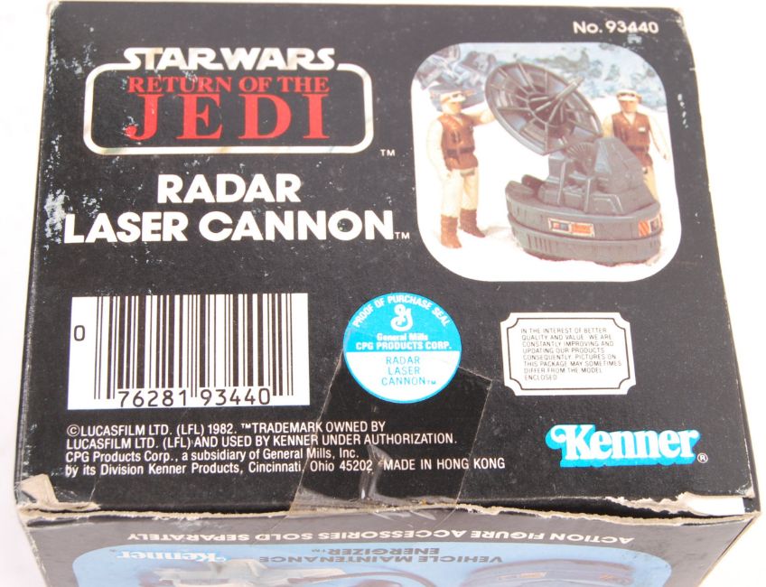 A rare original vintage Kenner made ex-shop stock factory sealed Star Wars ' Radar Laser Cannon Toy ' minirig action figure playset. Contents mint, untouched and never used. The box unopened and fully factory sealed. Return Of The Jedi box. Rare in this form.