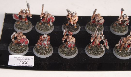 Warhammer - a collection of x16 Games Workshop / Citadel Warhammer figures ' Barbarian Warriors '. Plastic. All fully pro-painted to a very good standard. Each mounted on it's decorated round base. Well detailed figures.