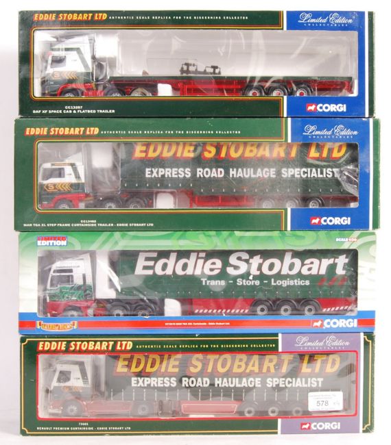 A collection of 4x Corgi made Limited Edition Eddie Stobart series boxed 1/50 scale precision diecast models. All appearing mint, and complete, within their original boxes. Comprising: 75601, CC13207, CC13415 and CC13405. With certificates where originally present.
