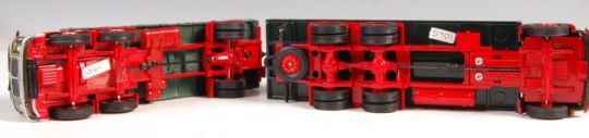 Two rare original Corgi pre-production / prototype ' Code 3 ' Eddie Stobart haulage diecast models. The first being a Leyland Hippo Flatbed with Container and the other being an AEC Mk V with Load. Both unproduced models, some elements appearing hand painted by the designer. Supplied in associated boxes. NOTE: From a large collection of ' pre-production / prototype / Code 3 ' haulage related diecast. Originally purchased from a gentleman associated with Corgi some years ago, it is generally believed by the vendor that each model is a ' sample ' which was made for approval by Corgi. Some went in to full production, others didn't. Many are supplied in associated (incorrect) Corgi boxes, others are unboxed. Wing mirrors are either fitted or supplied unused, or not present. All should generally be considered to be ' mint ' but some may have wear - buyers are reminded for the need to satisfy themselves on this matter prior to bidding. A great collection.