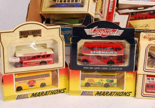 A collection of approx x30 Lledo Days Gone and similar boxed diecast model vehicles. Largely all advertising related, some early ' Marathons ' series present. All models appear mint, within their original boxes.