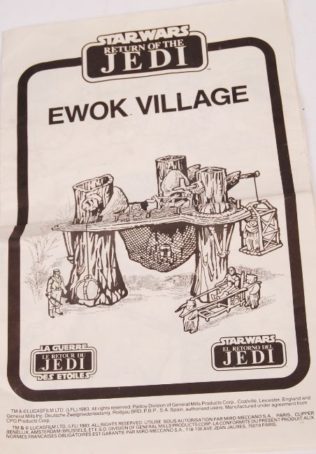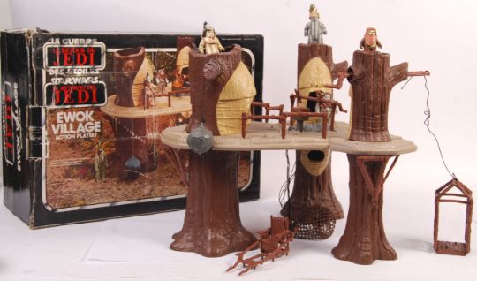 An original vintage Palitoy made Star Wars ' Ewok Village Action Playset '. 100% complete, including all small accessories and elements. With original instructions present. Within it's original bi-logo ' Return Of The Jedi ' box. Included are x4 original Ewok action figures. Rare.