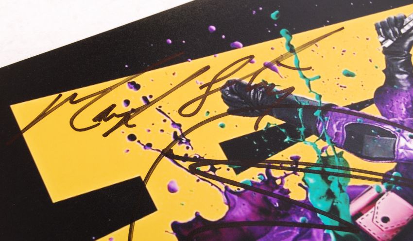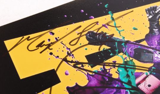 Kick Ass ( 2010 ) - incredible cast signed 11x14" movie photograph / poster - signed by the main cast members Nicholas Cage, Chloe Moretz, Aaron Johnson and Mark Strong. All signed in either blue / black ink to the central part of the photograph. All obtained in person at the premiere, by the vendor.
