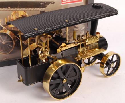 A vintage Wilesco made Live Steam ' Dampfwalzen ' traction engine / tractor. Appears little used, within it's original box. Complete with instructions, solid fuel tablets and all inner packing. Brass construction. Wonderful model.