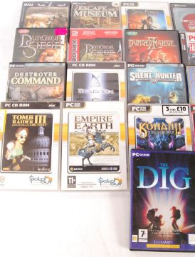 A collection of 21x assorted vintage PC DVD & PC CD Rom computer games to include; The Dig, Port Royale, Faces Of War, Dungeons Siege I & II, Enemy Engaged Xplosiv and much more.
