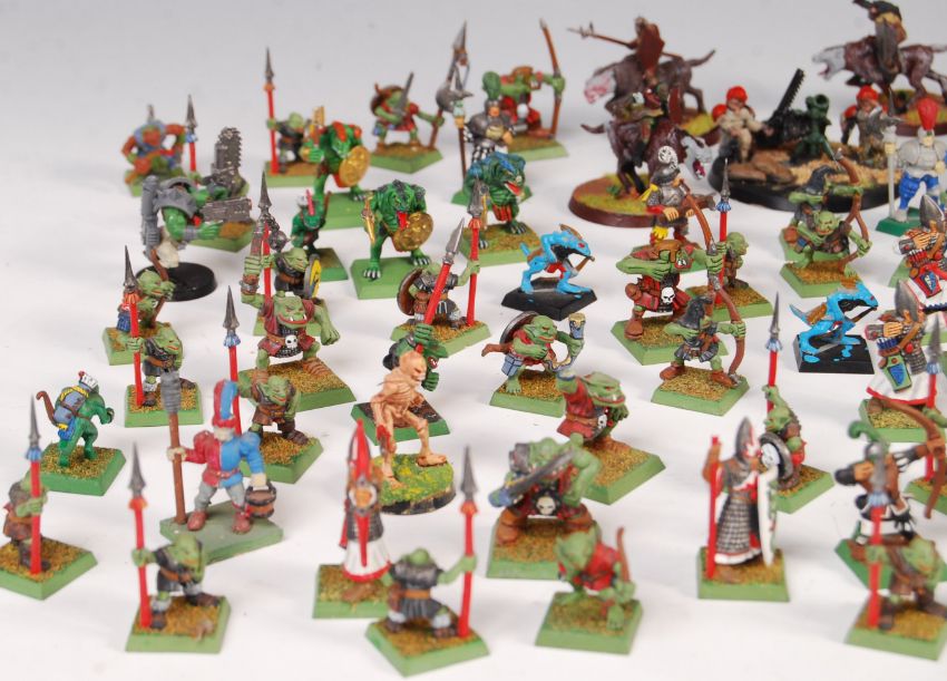 Warhammer - a large collection of approx 130+ assorted plastic Games Workshop Warhammer figures. Comprising of Orks, Goblins, Bretonnians, Empire etc. . Several armies present. All painted to a generally very good standard. Great collection.
