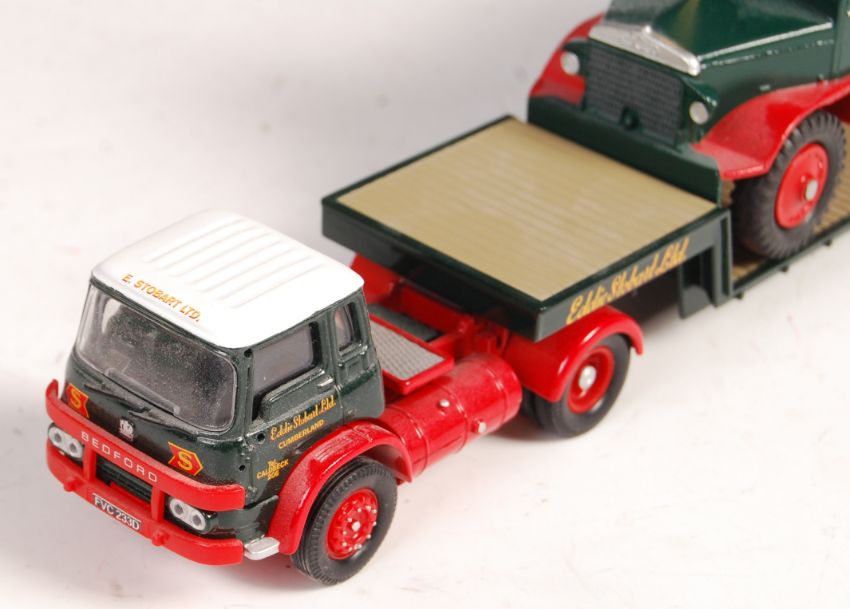 A rare original Corgi pre-production / prototype ' Code 3 ' Eddie Stobart haulage diecast model - Bedford KM with Euclid Dump Truck and Trailer. The Euclid actually being a re-purposed Dinky Toys example, in Eddie Stobart livery. Within an associated box.NOTE: From a large collection of ' pre-production / prototype / Code 3 ' haulage related diecast. Originally purchased from a gentleman associated with Corgi some years ago, it is generally believed by the vendor that each model is a ' sample ' which was made for approval by Corgi. Some went in to full production, others didn't. Many are supplied in associated (incorrect) Corgi boxes, others are unboxed. Wing mirrors are either fitted or supplied unused, or not present. All should generally be considered to be ' mint ' but some may have wear - buyers are reminded for the need to satisfy themselves on this matter prior to bidding. A great collection.