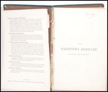 The Gardener's Assistant: Practical and Scientific book by Robert Thompson, this is the new edition  by Thomas Moore, F.L.S, Illustrated by numerous engravings and coloured plates. Published by Blackie and Son, Limited, the book being green leather bound with gilt lettering.
