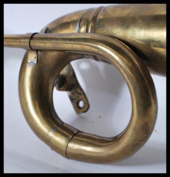 A early 20th Century vintage brass and rubber side mounted car horn in working order. Measures: 38cm long.