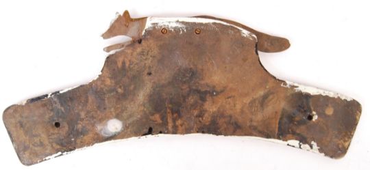 A rare vintage early reproduction 1930's LNER locomotive nameplate ' The Goathland '. D49 class loco, LNER London & North East Railway, number 62765. Cast brass, with black painted ground and raised lettering. A fox running left to right features top centre. Curved. Measures approx; 50 cm long x 20cm tall. Provenance: From the vendor: 'I grew up in Middlesbrough and we used to go down to the North York Moors for days out. My parents won it in a raffle, held by the steam railway some time between 1968 and 1972. It has been attached to sheds and various other parts of my parents houses ever since.'