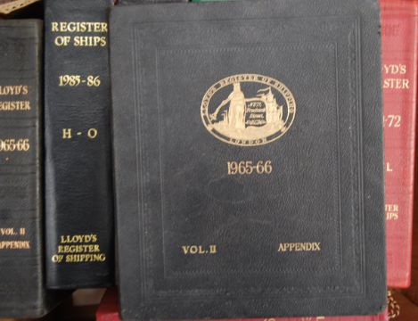 A collection of Lloyd's Register of Ships books 8 volumes in leather bound hardcovers with gilded lettering to spines. Dating from the 1960's - 1970's.
