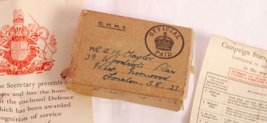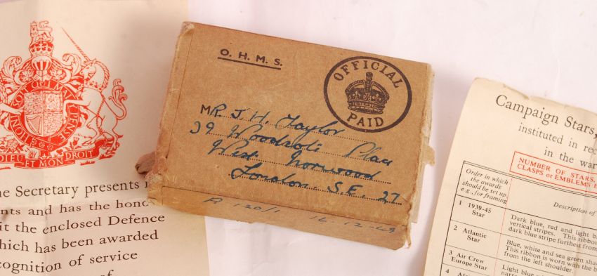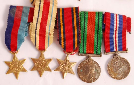 A good WWII Second World War medal group awarded to a J.H. Taylor of London. Comprising: War Medal, Defense Medal, Burma Star, Africa Star and 1939-45 Star. Miniature medals also present. All with original ribbons. With medal card and original box of issue. Interesting medal group.