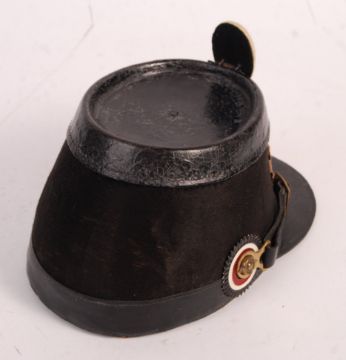 A rare WWI First World War period Imperial German / Bavarian Shako / Kepi uniform hat. The hat of leather and felt construction, with a original metal plate badge to front and white / blue cockade to front. Original strap with brass furniture present. A rare example.