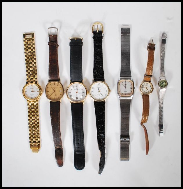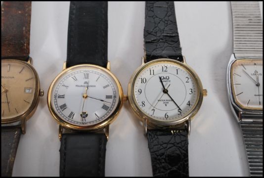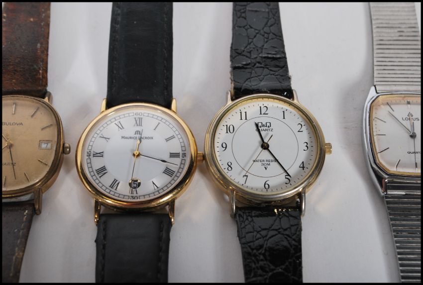A collection of vintage gentleman's watches to include a Maurice LaCroix, a Bulova Quartz, a Seiko cocktail watch, a Lorus 1970's watch, a Sekonda, Q & Q Quartz and a Timex.