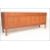 A mid 20th Century retro teak wood sideboard credenza of Danish influence having four short drawers below a shamford flared top with a cupboard to each end and two central full front cocktail compartments. Raised on four straight legs. Measures 78cm tall by 203cm wide and 47cm deep.