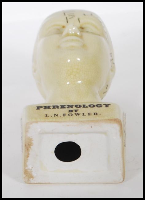 A 20th Century desk top phrenology head ornament of small proportions having printed annotations. Measures 15cm tall.