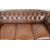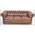 A good Victorian style chesterfield three seater sofa of good proportions, deep button back upholstered with scroll back and arms in tan coach leather, with three cushions.