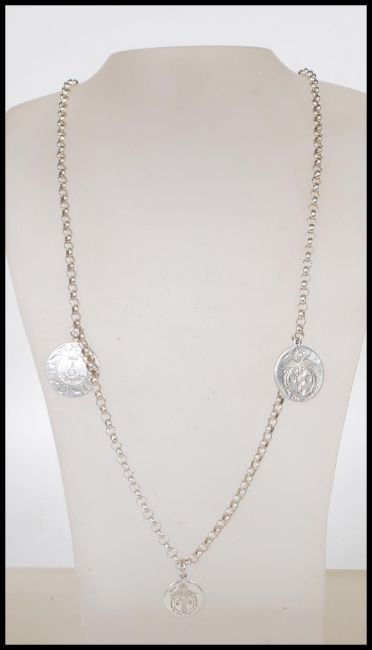 A stamped 925 silver belcher link necklace chain having a selection of Circle of Raphael talismans including Money, Luck the Seven Archangels and an Ankh pendant. Chain measures 66cm. Weight 44.5g.