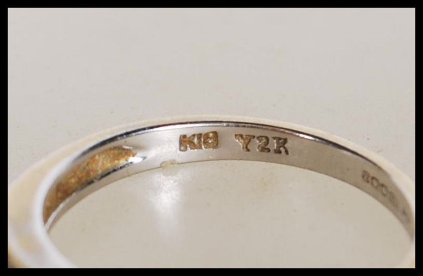 An 18ct English hallmarked white gold ring channel set with eight round cut diamonds. Hallmarked Sheffield 199. Weight 2.7g. Size N.
