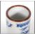 A early 20th Century Chinese blue and white brush pot decorated with a phoenix and dragon having central cartouche panel to verso with geometric pattern border. Concentric blue circles to base around six character marks for Kangxi but later. Measures 13cm tall by 5cm diameter.