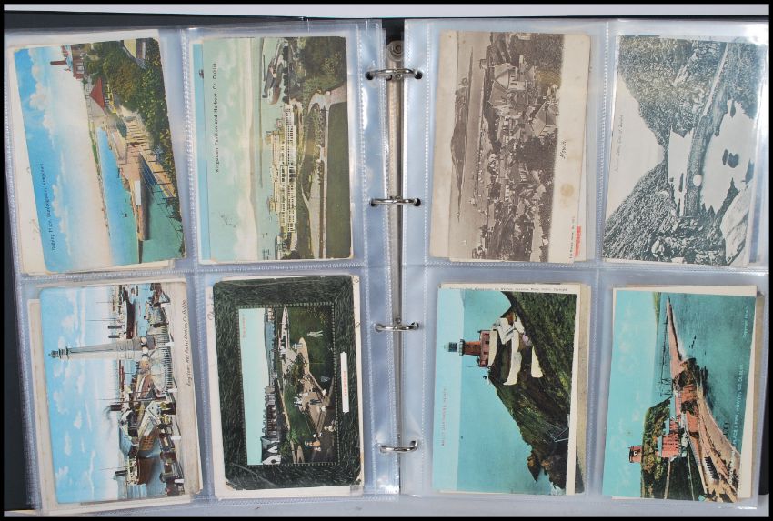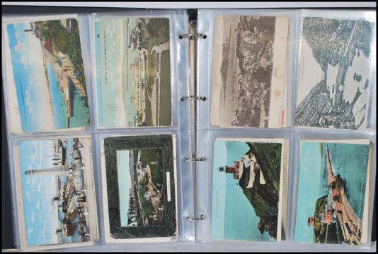 Two Ireland postcard (inc Northern) album collection of vintage Irish postcards approx 358 mostly of street scenes (many with trams), shop front, social history, novelty, comic etc. Good range from across the island.Many postally used.