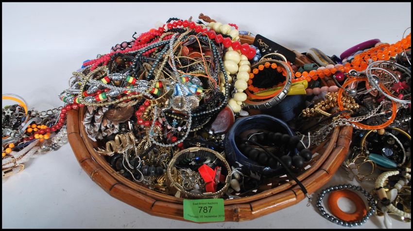 A collection of vintage and contemporary costume jewellery to include bracelets, bangles, necklaces, hair slides etc.