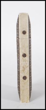 A late 19th Century Anglo Indian Sadeli celluloid card case having Vizagapatam micro mosaic inlay on sandalwood. Measures 10cm tall by 8cm wide.