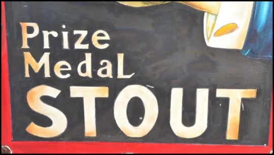 A contemporary artist's impression of a vintage enamel advertising sign for Lloyd and Yorath's prize medal stout. Having central arm holding a pint with red border. Measures 69 cm tall by 49cm wide.