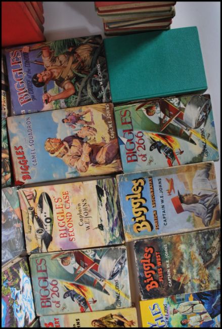 A collection of Biggles books by Captain W.E. Johns to include several 1st editions, the first editions to include titles No Rest For Biggles, Biggles of 266, Biggles and The Missing Millionaire,  Biggles of The Special Air Police, Biggles Air Detective, Biggles Breaks The Silence, Biggles Buries A Hatchet, Orchids For Biggles, Biggles Takes A Holiday, Biggles Chinese Puzzle, Biggles Foreign Legion, Biggles and The Poor Rich Boy and Biggles Second Case together with several other Biggles Titles.