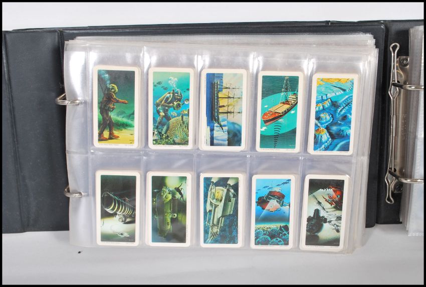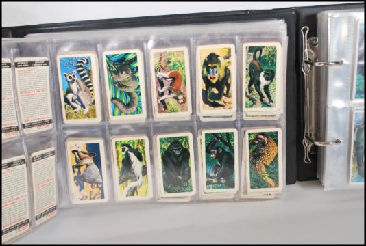 A collection of trade cards and giveaway cards over three albums to include Going Wild issued by Brooke Bond Tea, Creatures Of Legend issued by Brooke Bond Tea, The dinosaur Trail issued by Brooke Bond Tea, Olympic Challenge 1992 issued by Brooke Bond Tea and many more.