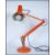 A vintage 20th Century Herbert Terry Industrial anglepoise desk lamp in an orange colourway, raised on circular base with adjustable frame terminating with a conical shade. 75cms high