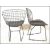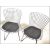 A set of four contemporary side chairs / dining chairs in the manner of Harry Bertoia 420C chairs. Each chair having an ebonised metal wire work frame with mesh basket like seat and backrest, all raised upon shaped metal bar supports. Measures; 84cm high x 53cm wide x 55cm deep.