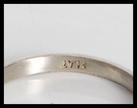 A stamped platinum band ring having engraved geometric decoration. Weight 2.4g. Size M.5.