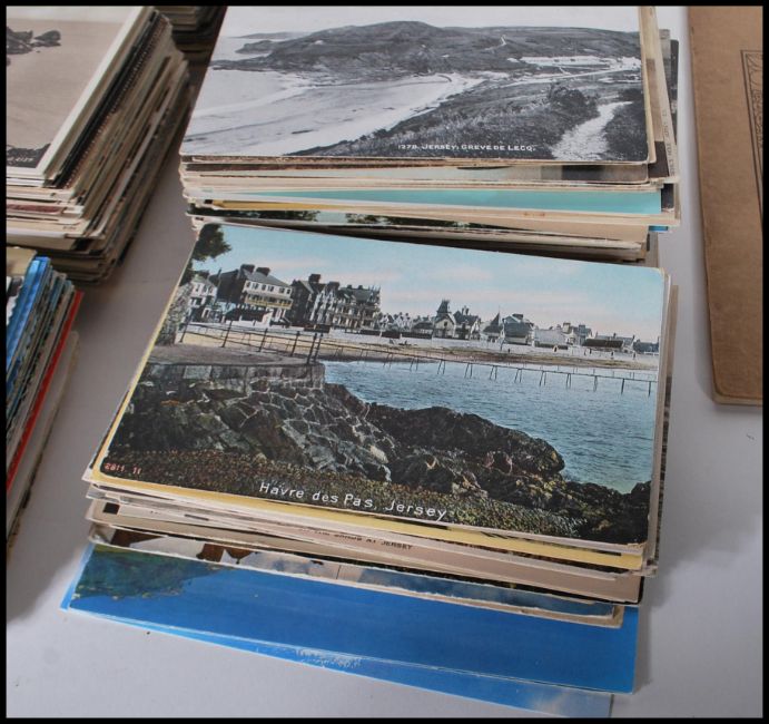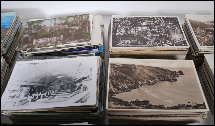 Channel Islands postcards. Large collection +/- 2,000 cards Edward 7th to Elizabeth II. Guernsey, Jersey with smaller isles - Alderney and Sark. With pair of old booklets