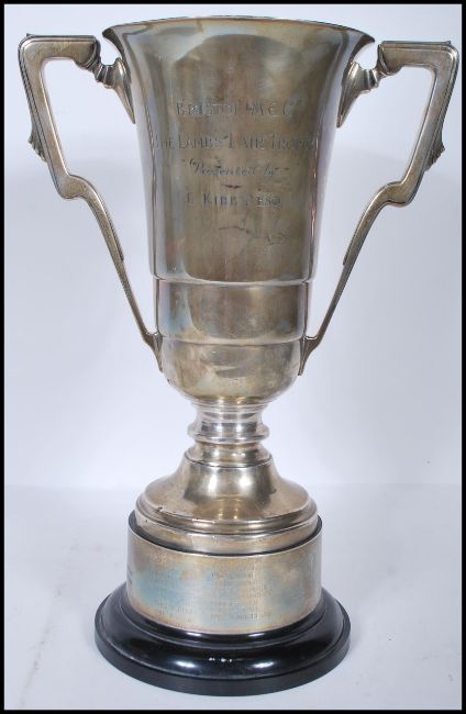A rare vintage 1960's / 1970's ' Bristol Motorcycle Club ' hallmarked silver trophy. Marked for ' The Bristol MCC ' The Lambs Lair Trophy - Presented By E. Kibby Esq '. Hallmarks rubbed, but engraved winners' names to base dating back to 1963. 700g total weight.