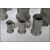 A set of six graduating 18th / 19th Century French apothecary pewter measuring cups. Each measure bearing press marks with some stamped PNL and crown marks to most. Smallest measure in centiliter. Tallest measures 15cm tall.