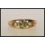 A hallmarked 9ct gold ring with central oval cut green stone flanked by two teardrop green stones on a tapering mount. Hallmarks for London 375. Weighs 2.6g. Ring size P.