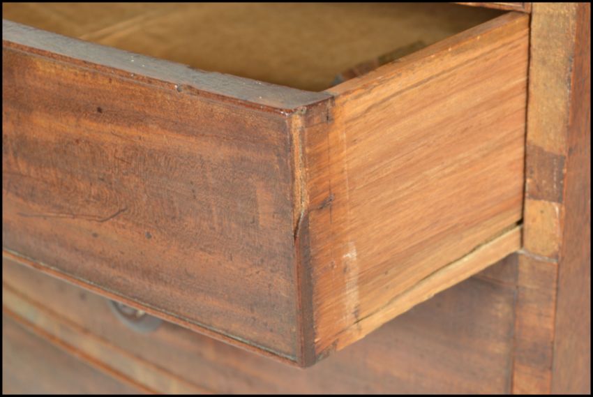 A 19th Century Victorian graduating chest of four drawers having a flared top raised on bracket supports, having turned knobs to the drawers. Measures: 95 cms tall x 95 cms wide x 53 cms deep
