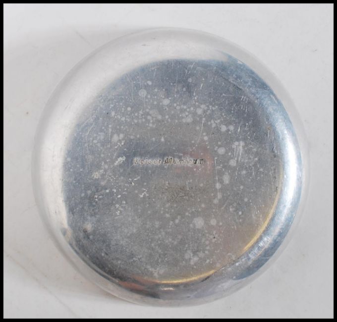 A vintage mid 20th Century large Aluminium ashtray marks to the base reading Kaiser Aluminium London.